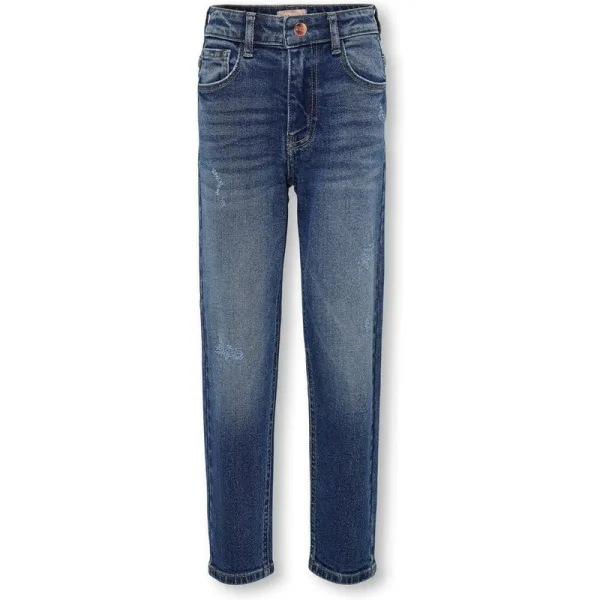 Deze blue denim jeans van Kids Only is de perfecte toevoeging aan de garderobe van jouw kleine fashionista! De klassieke blauwe wassing creëert een tijdloze look, terwijl de destroyed stukken aan de voorzijde zorgen voor een stoere touch. De loose fit pasvorm biedt comfort en bewegingsvrijheid, ideaal voor actieve meisjes.en#10;en#10;Deze 5-pocket jeans is gemaakt van hoogwaardig materiaal, bestaande uit 99% katoen en 1% elasthan. Dit zorgt niet alleen voor een zachte en comfortabele stof, maar ook voor een duurzame en stevige kwaliteit. De jeans is voorzien van een knoop- en ritssluiting en heeft knoopsgatelastiek in de taille, waardoor de broek gemakkelijk aan- en uitgetrokken kan worden en altijd perfect aansluit.en#10;en#10;Dankzij de tijdloze blauwe kleur en de trendy details is deze jeans geschikt voor elke gelegenheid. Combineer het met een leuke blouse en sneakers voor een casual look, of draag het met een feestelijke top en hakken voor een chique uitstraling. Bestel nu deze blue denim jeans van Kids Only in onze webshop en laat jouw dochter stralen in stijl!