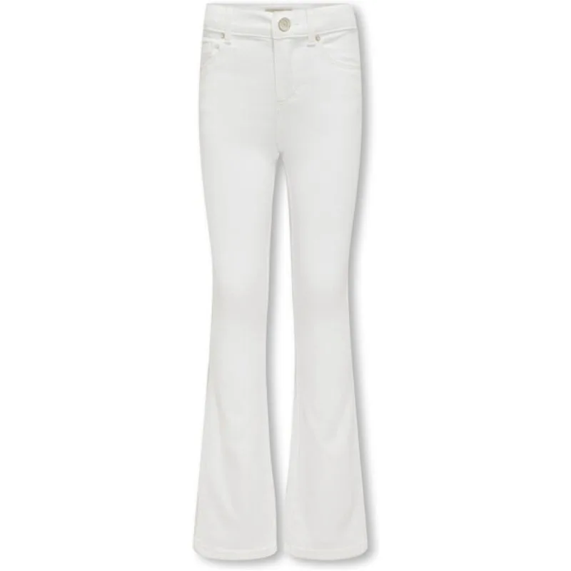 )en#10;en#10;en#10;Deze heerlijk comfortabele witte jeans bootcut flare fit voor meisjes van het bekende merk Kids Only is een absolute must-have voor de garderobe van jouw trendy dochter. Het flared model zorgt voor een speelse en stijlvolle look, terwijl de bootcut fit zorgt voor een perfecte pasvorm en slanke uitstraling.en#10;en#10;Gemaakt van hoogwaardig materiaal bestaande uit 69% katoen, 29% gerecycled polyester en 2% elastaan, biedt deze jeans ultiem draagcomfort en is het ook nog eens duurzaam geproduceerd. De fijne stretchstof beweegt soepel mee met elke beweging en zorgt ervoor dat jouw kleine fashionista zich de hele dag vrij en comfortabel kan bewegen.en#10;en#10;Deze witte jeans is eindeloos te combineren en kan gedragen worden bij elke gelegenheid. Combineer het met een leuk t-shirt en sneakers voor een trendy alledaagse look, of met een blazer en hakken voor een chique uitstraling. Het zal gegarandeerd een favorite item worden in de kledingkast van jouw meisje.en#10;en#10;Upgrade de garderobe van jouw dochter met deze witte jeans bootcut flare fit van Kids Only en geniet van een trendy, comfortabele en duurzame toevoeging aan haar collectie. Bestel snel en eenvoudig online bij NummerZestien en beleef de ultieme shopping experience!
