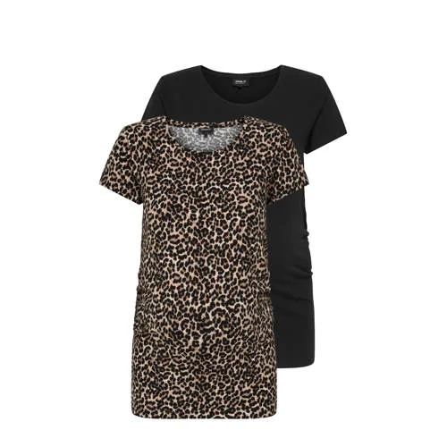 ONLY MATERNITY zwangerschapsshirt - set van 2 bruin/zwart
