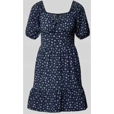 dames mini-jurk van Only;Model 'Hillary';look: all-over motief;pasvorm: getailleerd;Lengte: mini;hals: vierkante hals;Patroon: bloemenmotief;Applicatie: strik;mouwvorm: pofmouwen;materiaalverwerking: crêpe