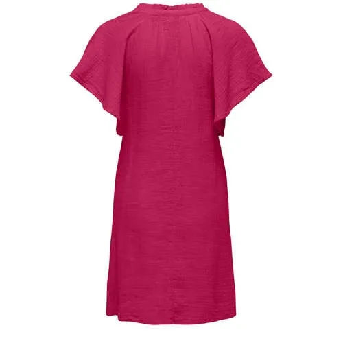 De lente vraagt om lichte, makkelijke outfits en deze korte roze dames jurk van katoen van ONLY sluit daar goed op aan. De geweven stof voelt luchtig aan en de effen roze kleur zorgt voor een frisse, zachte uitstraling. De jurk valt kort, heeft korte mouwen en een elegante V-hals, waardoor hij zowel casual als iets gekleder gedragen kan worden. Ideaal voor dagelijkse momenten waarop je er verzorgd uit wilt zien zonder lang na te denken over je outfit.Details die je elke dag draagt Gemaakt van 100% katoen, voor een zachte en ademende touch op de huid Korte lengte en rechte mouwen voor een luchtige uitstraling V-hals zorgt voor een vrouwelijke, open halslijn Effen roze kleur, makkelijk te combineren met sandalen, sneakers of laarsjes Zonder sluiting, je schiet de jurk eenvoudig aan en uit Geen zakken voor een rustige, vloeiende look Maatadvies: dit artikel valt normaal Onderhoud: handwas, niet strijken en niet in de droogtrommelElke dag een simpele keuzeDeze mini jurk uit de 'Daily' collectie is gemaakt voor momenten waarop gemak voorop staat. Draag hem met sneakers en een denim jack op frisse lentedagen of combineer met sandalen en een lichte tas voor een ontspannen dag in de stad.ONLY: toegankelijke stijl voor elke dagONLY staat bekend om modieuze items die makkelijk te dragen zijn in het dagelijks leven. De collecties volgen de trends, maar blijven praktisch en combineerbaar, zodat je met een paar sleutelstukken steeds nieuwe looks samenstelt.Een praktische basisjurk waar je in het voorjaar en de zomer vaak naar zult grijpen.