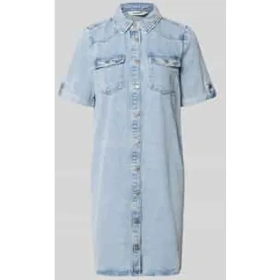 Dames denimjurk van ONLY;Model 'LISA';Look: effen,;Pasvorm: nauwsluitend;Lengte: Mini;Hals: V-hals;Applicatie: Labelstikken;Details: Achterpas;Mouwvorm: korte mouw;mouwboord: gefixeerde omslag;Tassen: Borstzakken;Materiaalverwerking: Denim;Materiaal: katoen-viscosemix