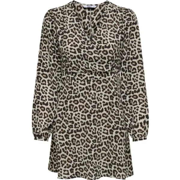 De Only Alma jurk is de perfecte toevoeging aan je garderobe. Deze korte damesjurk in zand dessin kleur is van het populaire merk Only. De jurk heeft lange mouwen en een v-hals, wat zorgt voor een elegante uitstraling. De regular fit pasvorm zorgt ervoor dat de jurk comfortabel zit en mooi valt. Het zand dessin geeft de jurk een speelse en stijlvolle look.en#10;en#10;Deze jurk valt boven de knieën en is daardoor perfect voor vele gelegenheden. Draag hem naar je werk met een paar mooie hakken en een blazer, of combineer hem met sneakers voor een casual uitstraling. Het all-over panterprint motief in de kleuren bruin en zwart zorgt voor een trendy touch aan de jurk. Zo ben je helemaal on trend met deze Only jurk.en#10;en#10;De stof van deze jurk is gemaakt van 68% gerecycled polyester en 32% polyester. Dit materiaal zorgt ervoor dat de jurk niet alleen super stijlvol is, maar ook nog eens duurzaam. Voeg deze must-have jurk toe aan je collectie en rock de zand dessin trend! Bestel nu deze Only Alma jurk bij Nummerzestien en geniet van een trendy en milieubewuste look.