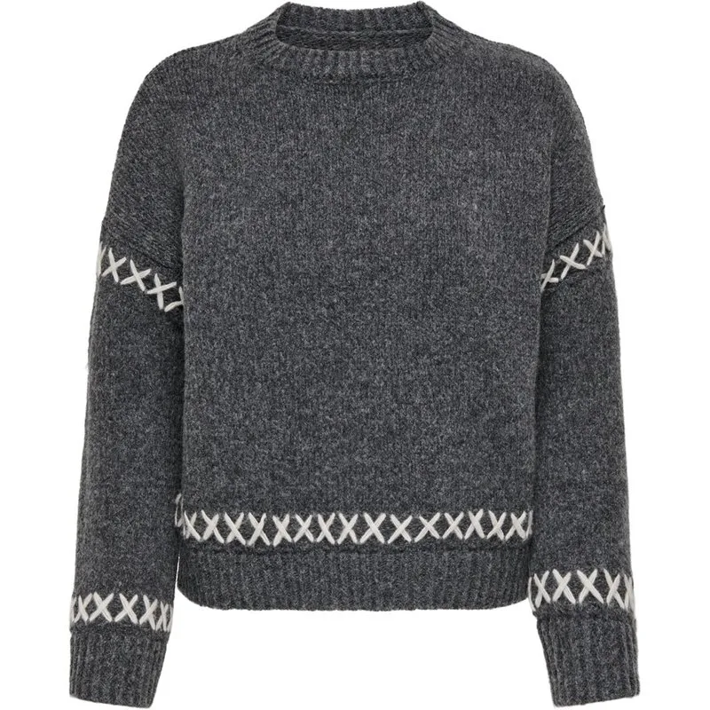 Only Onlamanda life ls o-neck detail cc antraciet