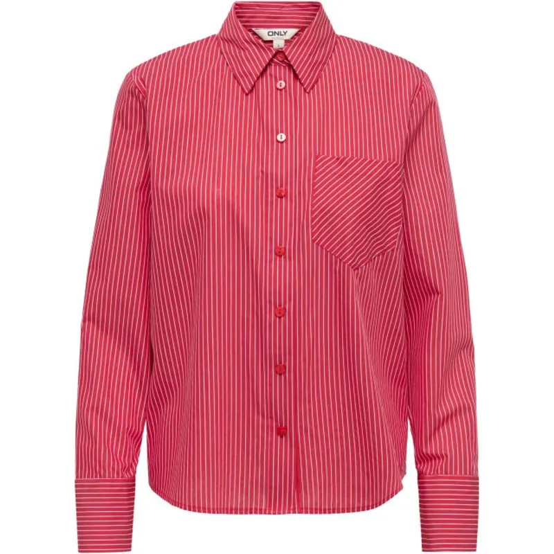De Only Onlbrooky LS Stripe blouse is een damesblouse in rood met wit ingeweven streepjes. Het is een recht overhemdmodel zonder extra details, met een normale lengte en regular fit. De blouse is gemaakt van katoen en polyamide. De lange mouwen draag je netjes lang of je stroopt ze op voor een wat informelere look. Een heldere, rustige keuze die je outfit strak en zelfverzekerd houdt.