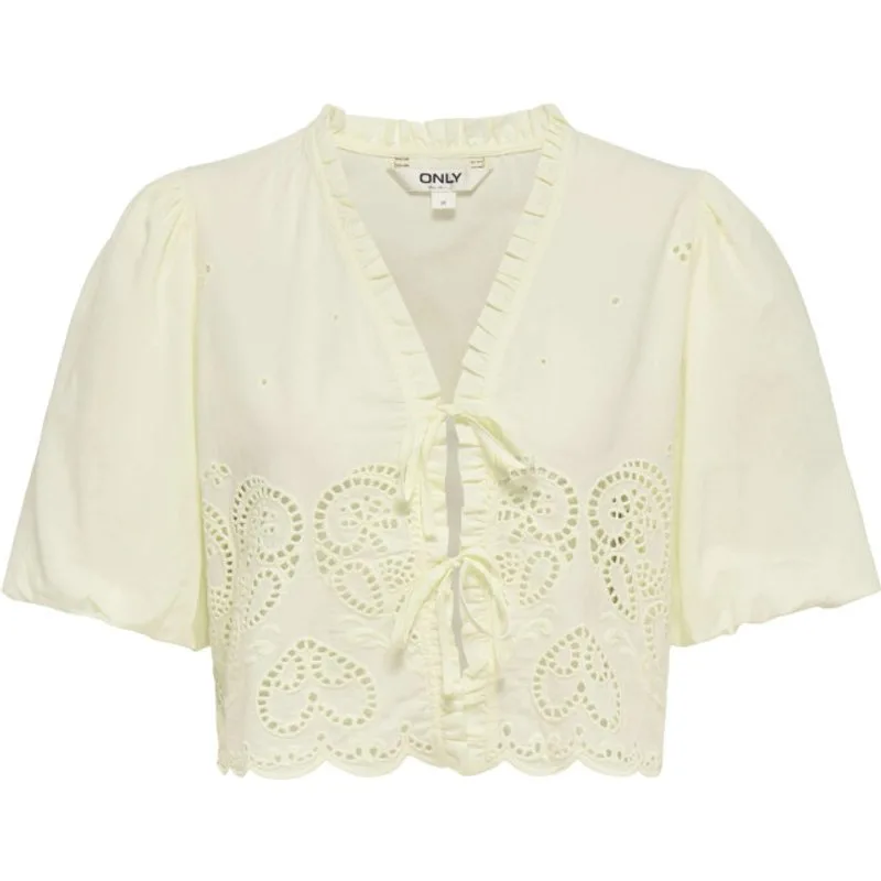 Only Onlbryson s/s short emb tie top wvn lemon icing Prijzen