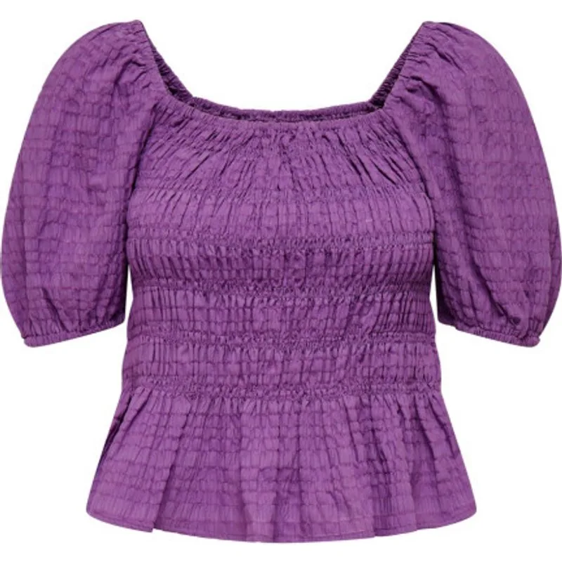 Bereid je voor om de show te stelen met deze prachtige paarse top van Only. De top, genaamd Carla, is perfect voor elke gelegenheid en kan gemakkelijk worden gestyled voor zowel casual als formele gelegenheden. De top heeft een prachtige vierkante halslijn en volumineuze korte mouwen met elastiek voor een subtiel poffend effect. Het gesmockte lijfje zorgt voor een mooie en flatterende pasvorm, waardoor deze top de perfecte aanvulling is op jouw garderobe.en#10;en#10;Gemaakt van een comfortabele en lichtgewicht mix van 58% viscose, 38% polyester en 4% elastaan, staat deze top garant voor een heerlijk draagcomfort. De paarse kleur geeft een vleugje kleur aan je outfit en laat je stralen. Combineer het met een jeans en sneakers voor een casual look of met een pantalon en hakken voor een chique uitstraling. Hoe je het ook draagt, met deze Only top ben jij altijd on-trend en klaar voor elke gelegenheid.en#10;en#10;Voeg deze must-have top toe aan je collectie en laat jezelf stralen in deze stijlvolle en trendy top. Bestel nu bij Nummerzestien en geniet van deze topkwaliteit top van Only in jouw favoriete kleur!