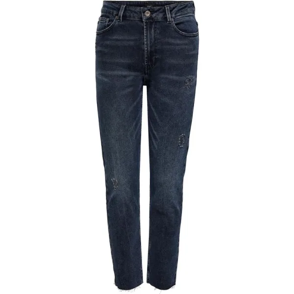 Op zoek naar een trendy en comfortabele jeans? Dan is deze blue denim jeans van het populaire merk Only echt iets voor jou! Deze jeans, model Emily, heeft een regular-straight fit en valt mooi op de heupen. Een echte must-have voor jouw kledingkast.en#10;en#10;Deze high-waisted jeans heeft een klassieke uitstraling en zit heerlijk door de stretch in het materiaal. De damaged vlekken geven de broek een stoere uitstraling en maken elke outfit compleet. De broek heeft een enkel lengte en is voorzien van een gerafeld randje aan de onderzijde voor een modieuze touch.en#10;en#10;Gemaakt van 98% katoen en 2% elastaan, is deze jeans niet alleen stijlvol maar ook duurzaam en comfortabel. Het materiaal zorgt ervoor dat de broek goed aansluit op je lichaam en je vrij kunt bewegen. Een perfecte keuze voor een dagje uit of een avondje stappen.en#10;en#10;Bestel nu deze Only jeans in de prachtige blue denim kleur en geniet van een veelzijdige en trendy toevoeging aan je garderobe. Combineer de broek met een leuk shirt en sneakers voor een casual look of met een mooie blouse en hakken voor een meer geklede outfit. Shop deze geweldige jeans nu op nummerzestien.eu!