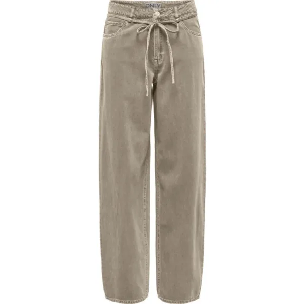 Deze damesbroek van Only is uitgevoerd in Khaki beige katoen met lengtemaat 32. Heeft een mediumhoge tailleband met strikbandje. De wide vorm en ruime pasvorm zorgen voor een relaxte, brede look. Draag met een T-shirt of top voor een moderne, verzorgde stijl. Een basisstuk dat je outfit een zelfverzekerde uitstraling geeft.