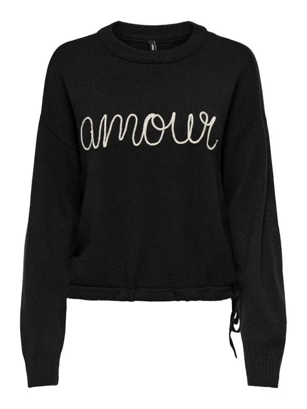 Only Onlkatia Ls Text O-neck Cc Knt Trui Black String Embroidery Whitecap Gr