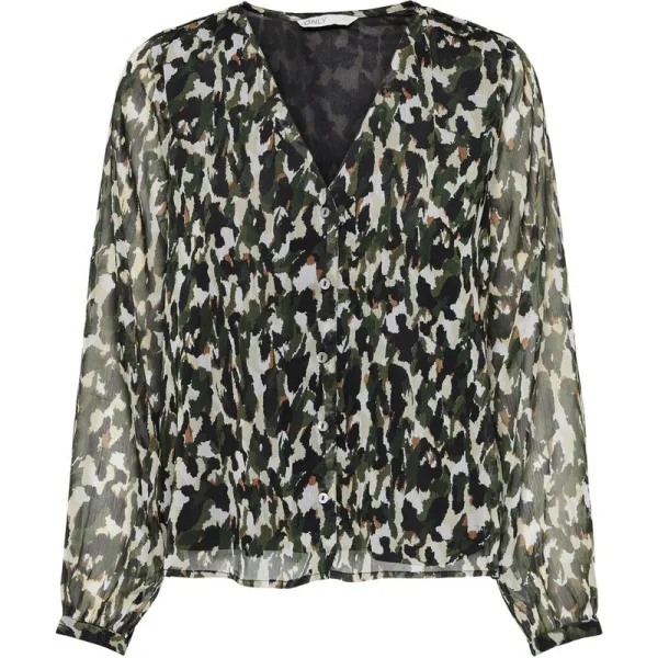 Deze stijlvolle only top in een prachtige groen dessin kleur is de perfecte aanvulling op je kledingkast. De semi-transparante stof is voorzien van een grafisch patroon, wat zorgt voor een speelse en trendy uitstraling. De top heeft een v-hals en de lange mouwen zijn afgewerkt met een elastische zoom, wat zorgt voor een comfortabele pasvorm. Gemaakt van 100% polyester, is deze top niet alleen trendy maar ook van hoge kwaliteit. Perfect te combineren met een jeans voor een casual look of met een rok voor een meer geklede uitstraling. Shop nu deze only top bij nummerzestien en upgrade je garderobe met deze must-have.