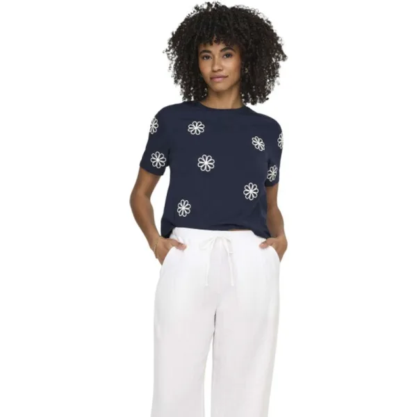 Specificaties: Only Onlmarisse s/s emb top box jrs navy blazer/flower