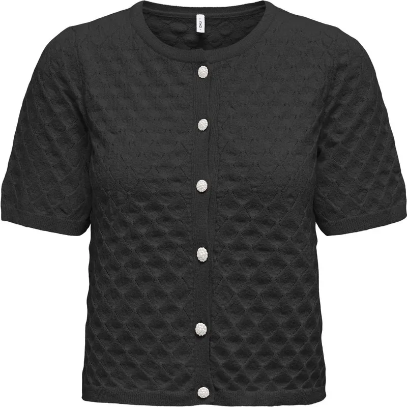 Only Onlsofia ss o-neck cardigan knt black/pearl button