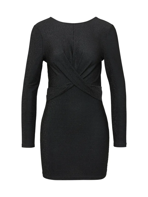 Design: Gevoerde zoom/rand, Rechte zoom; Halstype: Ronde hals; Motief: Effen; Details: Gedrapeerd; Extra's: Glitterend, Lichte stof; Lengte: Kort/mini; Snit: Figuur omarmend; Pasvorm: Aansluitende pasvorm; Armlengte: Lange mouw