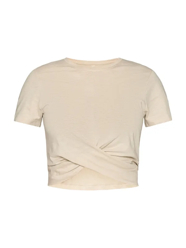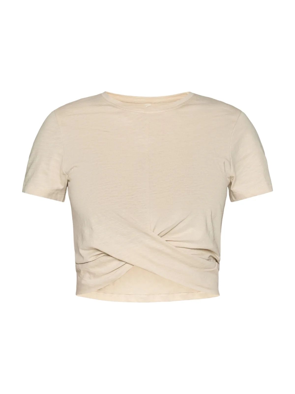 Design: Geribbelde kraag, Wikkel-look; Materiaal: Jersey; Halstype: Ronde hals; Motief: Mélange; Details: Gedrapeerd; Extra’s: Voelt zacht aan, Huidvriendelijk materiaal; Pasvorm: Slanke pasvorm; Armlengte: Kwartmouw; Lengte: Korte pasvorm