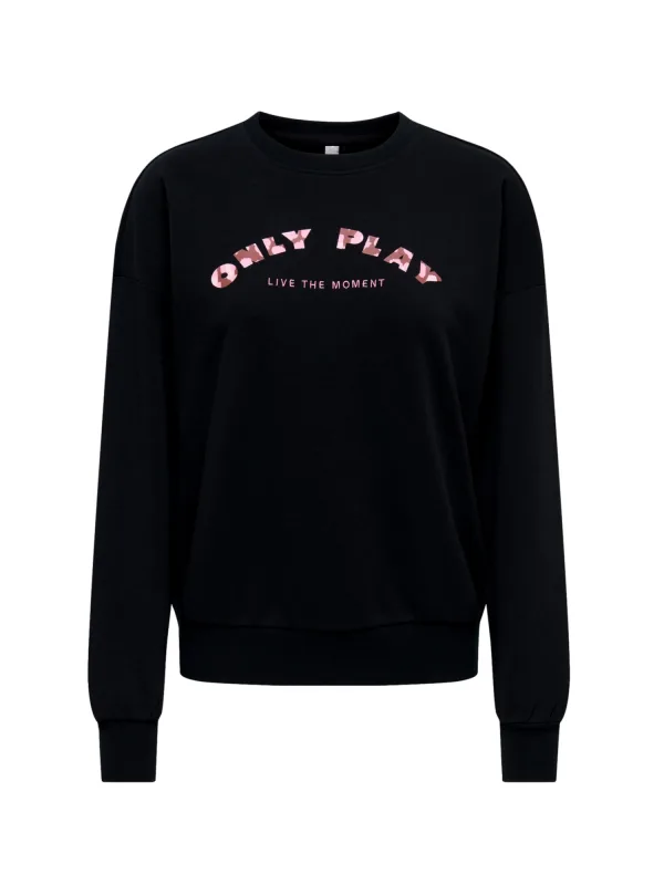 Het dames sweatshirt van Only Play combineert een ontspannen stijl met sportief comfort. De losse pasvorm zorgt voor een prettig draaggevoel in het dagelijks leven. Een ronde halslijn met ribbelafwerking geeft het ontwerp een klassieke uitstraling. De overhangende schouders benadrukken de casual look. Boorden aan de mouwen en onderkant zorgen voor een goede pasvorm. De merklayout op de voorkant geeft een moderne accent. Een kleine geborduurde tekst voegt het ontwerp subtiel toe. Het sweatshirt is veelzijdig te combineren en ideaal voor vrije tijd, sport of ontspannen uren. Het hoge draagcomfort staat hierbij centraal.