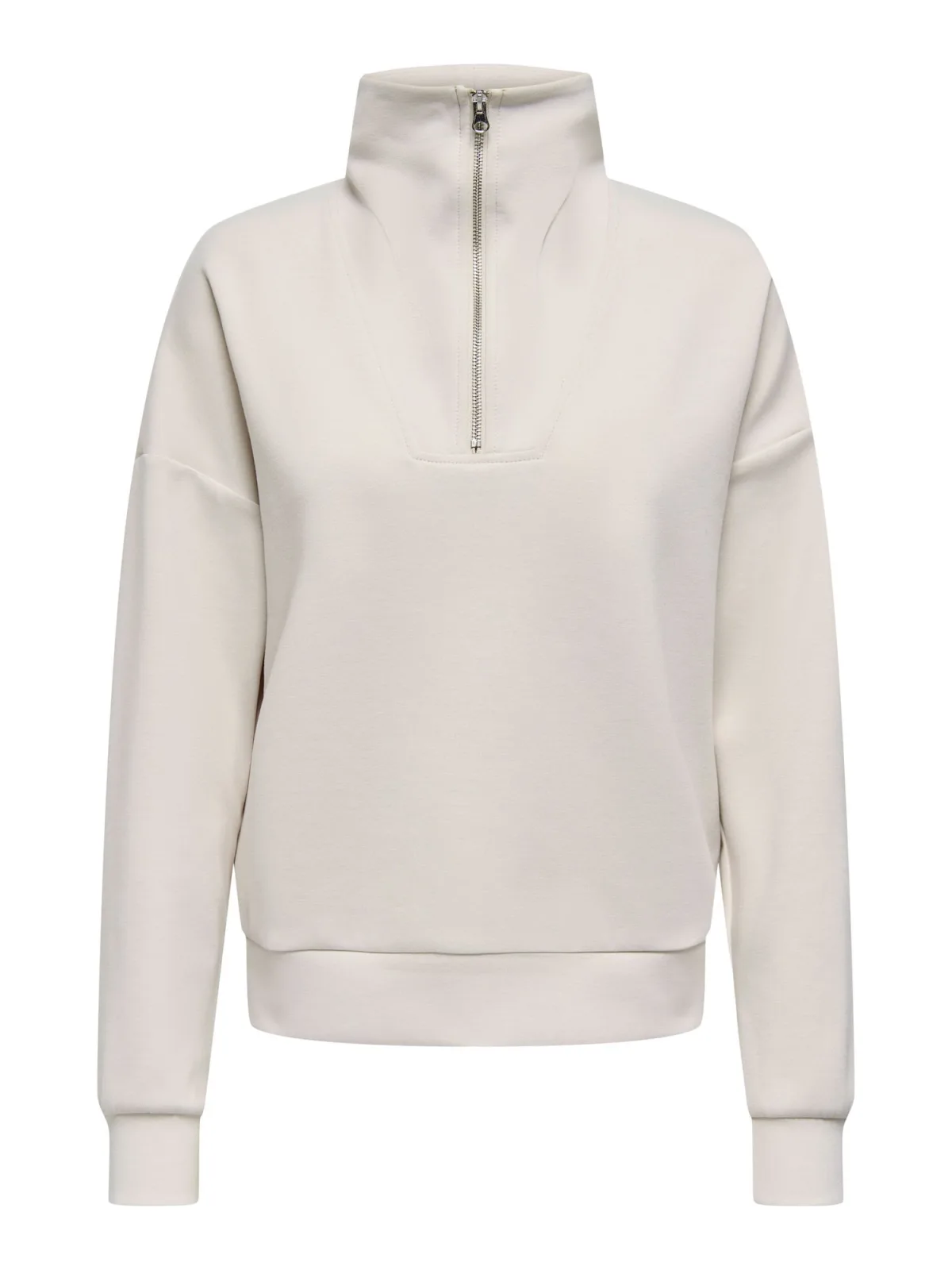 Design: Rechte zoom, Geribd ceintuurtje, Halve rits; Type sluiting: Ritssluiting; Materiaal: Sweatstof; Halstype: Schipperskraag; Motief: Effen; Extra's: Op staal naden; Pasvorm: Losse pasvorm; Armlengte: Lange mouw; Lengte: Normale lengte
