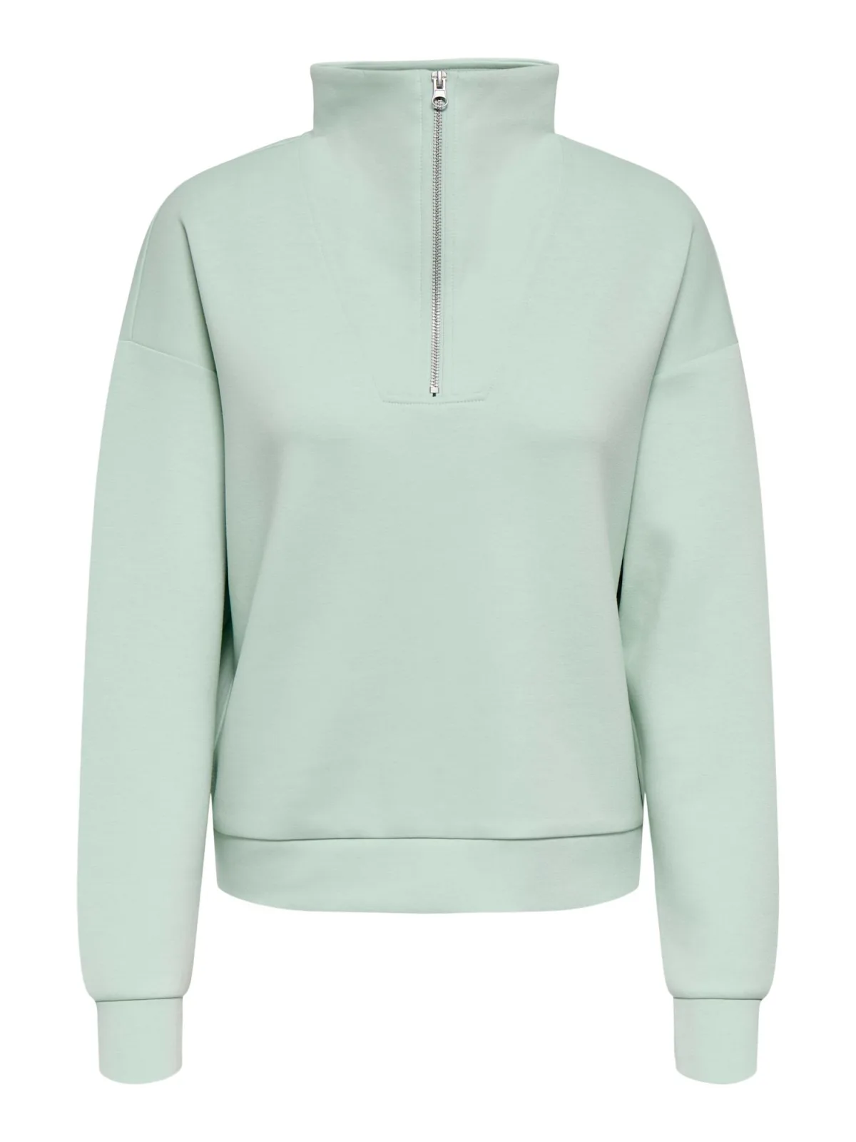 Specificaties: * Pasvorm: loose fit; hoge hals * Sluiting: korte rits in de hals * Kleur: lichtgroen/lichtblauw * Materiaal: 85% polyester - 15% viscose - 5% elastaan