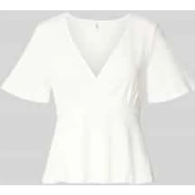 Dames Blouse van ONLY;Model 'Pelly';Optiek: effen, all-over motief;Pasvorm: regular fit;Patroon: structuur;Details: wikkellook, strikceintuur;hals: diepe V-hals;mouwvorm: korte mouw