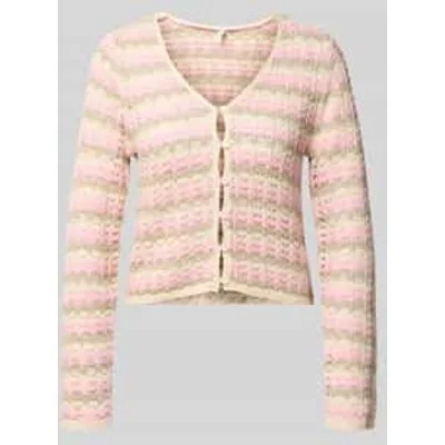 Dames gebreid jack van Only;Model 'Asa';Look: meerkleurig;Pasvorm: Regular Fit;Sluiting: enkelvoudige knoopsluiting;Patroon: Ajourpatroon;Hals: V-hals;Mouwvorm: lange mouw;Mouwboord: geribd;Rompzoom: geribd;Materiaalverwerking: Knitwear;Materiaal: Katoenmix