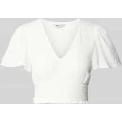 Dames kort top van Only;Model 'Hannah';look: effen kleuren;Pasvorm: regular fit;Patroon: structuur;Details: gesmokte onderbusteband;hals: V-hals;mouwvorm: vlindermouwen, korte mouw;rompzoom: Smok