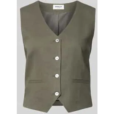 Dames linnen mouwloos vest van Only;Model 'Goa';look: effen;Pasvorm: regular fit;hals: V-hals;Sluiting: enkelrijige knoopsluiting;Applicatie: bindceintuur;Zakken: strookzakken;Materiaal: viscosemix