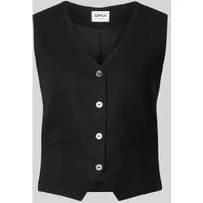 Dames linnen mouwloos vest van Only;Model 'Goa';look: effen;Pasvorm: regular fit;hals: V-hals;Sluiting: enkelrijige knoopsluiting;Applicatie: bindceintuur;Zakken: strookzakken;Materiaal: viscosemix