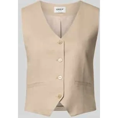 Dames linnen mouwloos vest van Only;Model 'Goa';look: effen;Pasvorm: regular fit;hals: V-hals;Sluiting: enkelrijige knoopsluiting;Applicatie: bindceintuur;Zakken: strookzakken;Materiaal: viscosemix