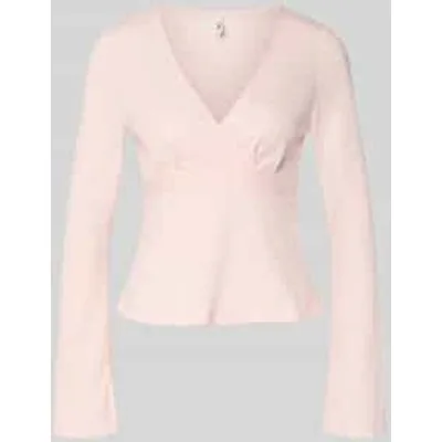 dames shirt met lange mouwen van Only;Model 'Pelly';Look: structuurpatroon;Pasvorm: regular fit;Details: wikkellook, bindceintuur;hals: diepe V-hals;mouwvorm: trompetmouwen