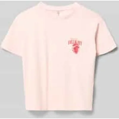 Kinderen T-shirt van 'Only';Model 'Sara';look: effen;Pasvorm: regular fit;Applicatie: motiefprint;hals: ronde hals;mouwvorm: korte mouw;rompzoom: met zij-splitten;materiaalverwerking: jersey;Materiaal: puur katoen