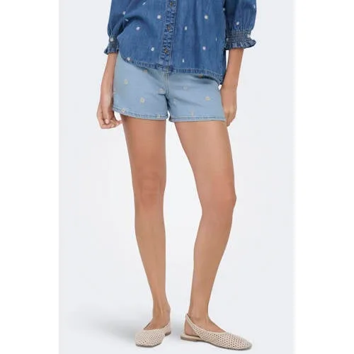 Voor zonnige dagen is deze dames korte broek van ONLY een fijne basis in je garderobe. De casual shorts in light blue denim hebben een frisse uitstraling, met een subtiele bloemenprint die het geheel net wat speelser maakt. Dankzij de regular waist en regular pasvorm zit de korte broek comfortabel rond je heupen en benen, zonder te strak of te wijd te vallen.Details die het verschil maken Gemaakt van 100% katoen, voelt soepel en luchtig aan op warme dagen Light blue denim met bloemenprint voor een frisse, dagelijkse look Regular waist en regular pasvorm voor een comfortabele, rechtvallende fit Rits- en knoopsluiting aan de voorkant Zijzakken en zakken achter voor het meenemen van kleine essentials Onderdeel van de Daily collectie, ideaal voor alledaags gebruik in lente en zomer Wasbaar op 40 graden en warm strijkbaar (2 punten) Niet drogen in de droogtrommel om de stof en kleur langer mooi te houdenCasual shorts voor elke dagDeze korte broek past goed bij een eenvoudig T-shirt of luchtige blouse en sneakers of sandalen. Handig voor een dagje stad, een wandeling in het park of een relaxte middag in de tuin. Het lichte denim en de bloemenprint geven jouw outfit meteen een zomers gevoel.ONLY: moderne stijlen voor elke dagONLY staat bekend om modieuze kleding die makkelijk te combineren is met wat je al in de kast hebt. De collecties volgen de laatste trends, maar blijven praktisch en draagbaar. Zo stel je zonder moeite een outfit samen die past bij jouw dagelijkse leven.Een luchtige, denim korte broek waar je in het voorjaar en de zomer vaak naar zult grijpen.