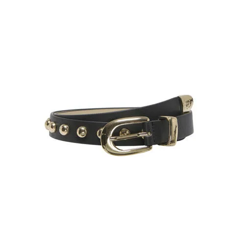 Deze ONLY riem is gemaakt van imitatieleer. De kleur is zwart met goudkleurige details. Met een stevige gesp draag je deze makkelijk om jouw outfit af te maken.