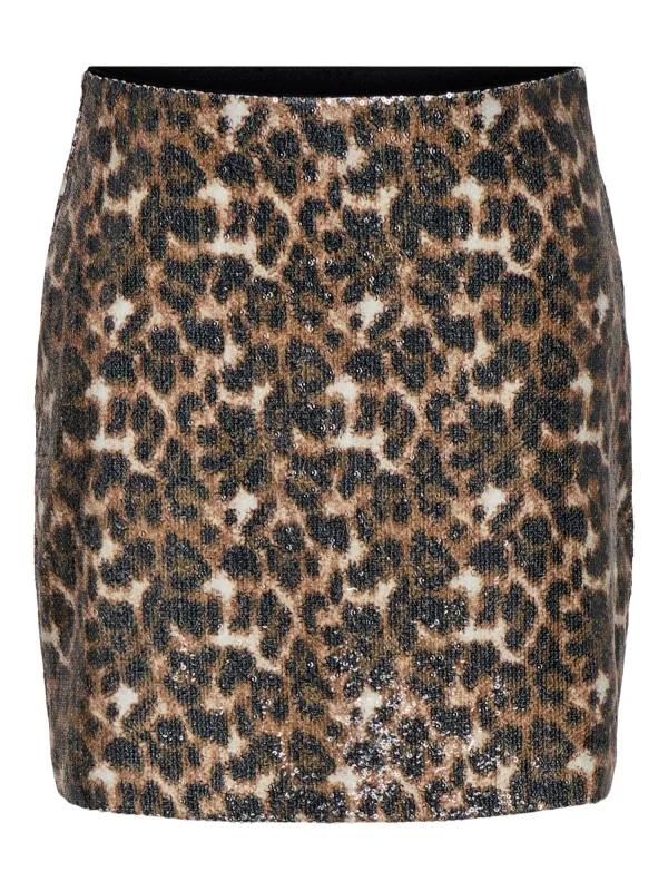 Design: Rechte zoom, Ritszakken aan de zijkant; Type sluiting: Ritssluiting; Motief: Dierenprint; Rokvorm: Minirok; Details: Pailletten; Extra's: Glitterend, All-over patroon, Applicaties; Lengte: Kort/mini; Pasvorm: Slanke pasvorm