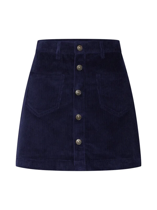 Design: Gevoerde zoom/rand, Knop placket, Opgezette zakken; Type sluiting: Knoopsluiting; Materiaal: Corduroy; Motief: Effen; Rokvorm: Minirok; Extra's: Op staal naden, Met textuur, Riemlussen; Lengte: Kort/mini; Pasvorm: Normale pasvorm