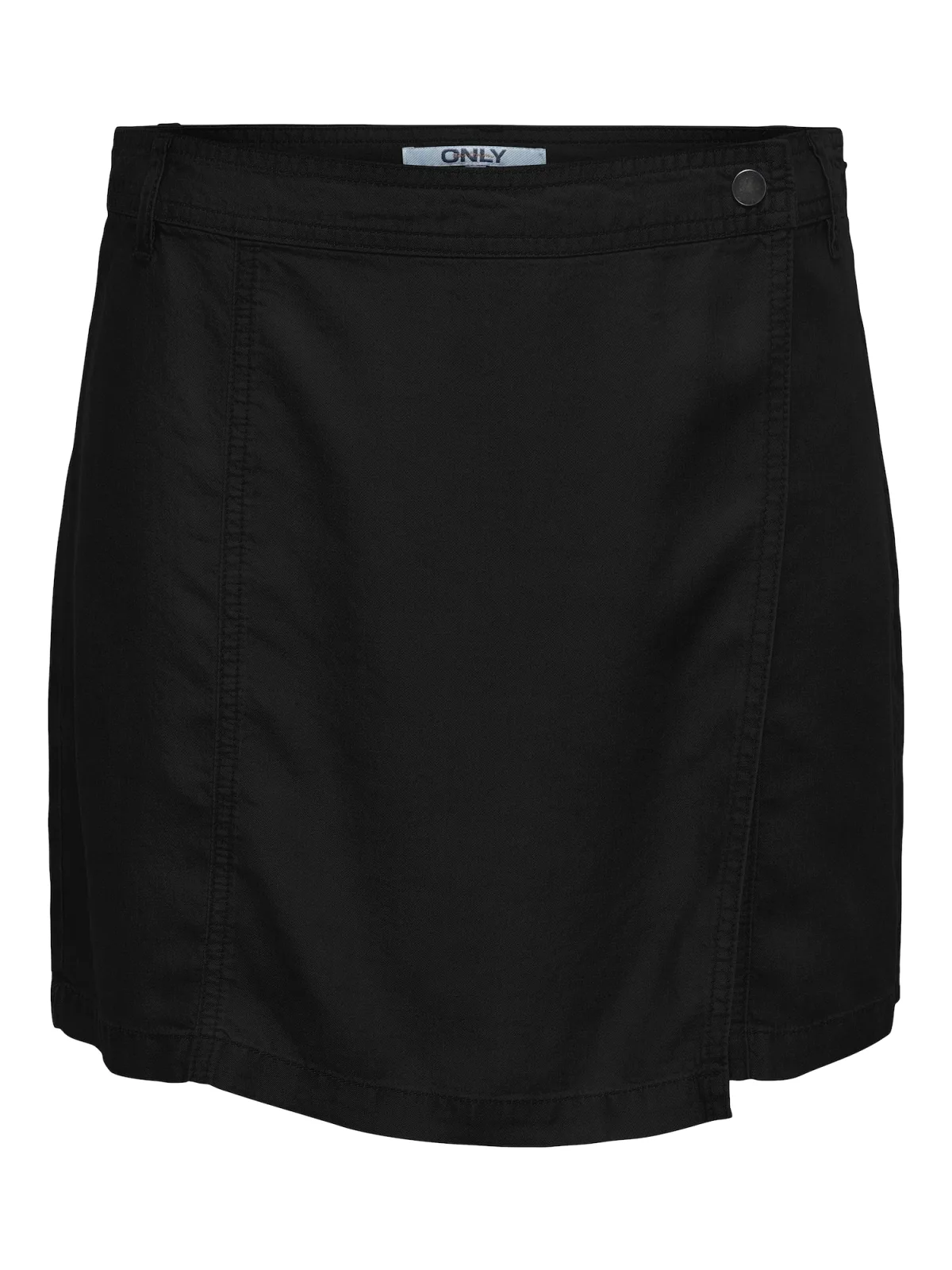Design: Gevoerde zoom/rand, Achterzak; Type sluiting: Drukknoop; Materiaal: Viscose; Motief: Effen; Details: Wikkel design; Extra's: Op staal naden, Riemlussen; Lengte: Kort/mini; Pasvorm: Normale pasvorm