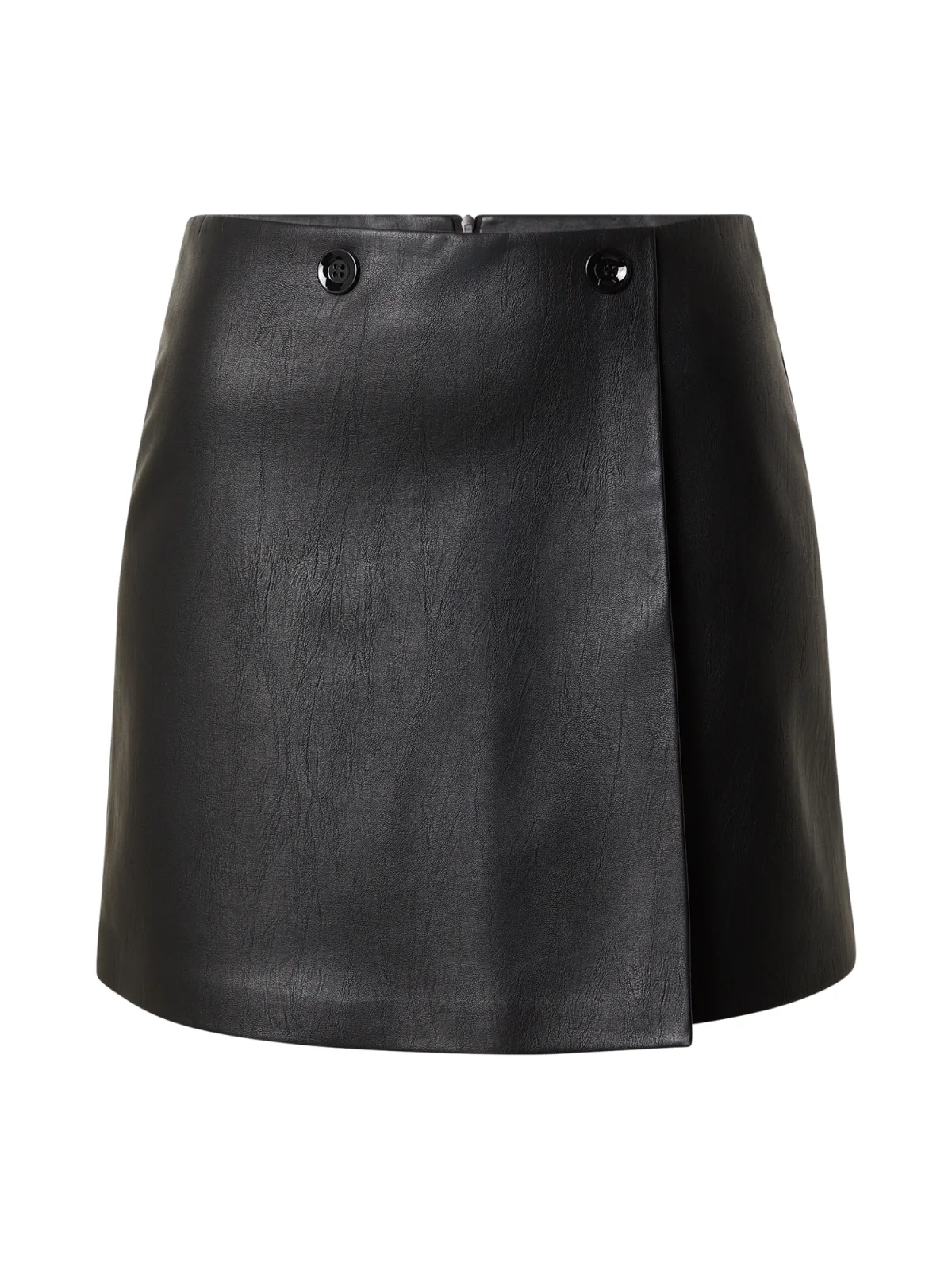 Design: Recht model, Knop sluiting; Type sluiting: Ritssluiting; Materiaal: Gerecycled materiaal; Motief: Effen; Rokvorm: Wickelrock; Details: Wikkel design; Extra's: Op staal naden, Gladde stof; Lengte: Kort/mini; Pasvorm: Normale pasvorm