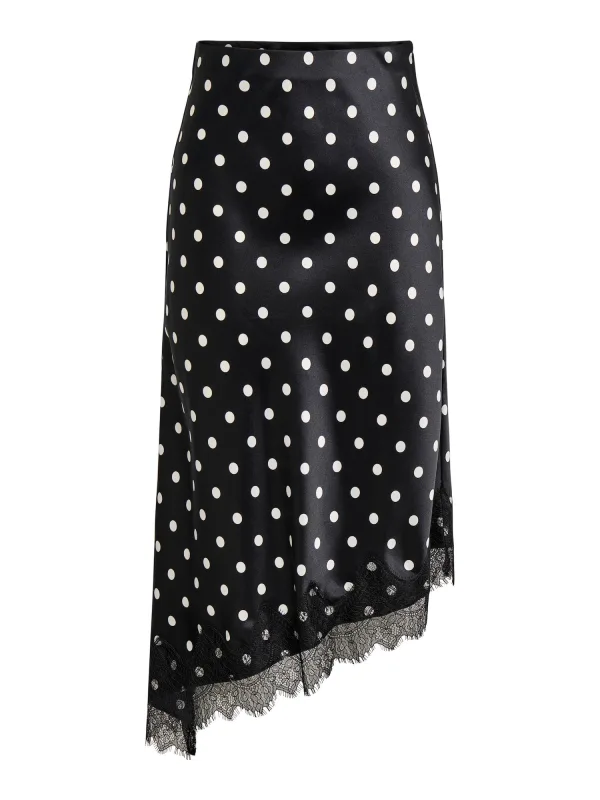 Design: Asymmetrische zoom, Elastische taille/zoom, Zoom/rand met boord; Materiaal: Satijn; Motief: Gestippeld; Details: Kant; Extra's: All-over patroon, Gladde stof; Lengte: 3/4 lengte; Pasvorm: Normale pasvorm; Taillehoogte: Mid waist