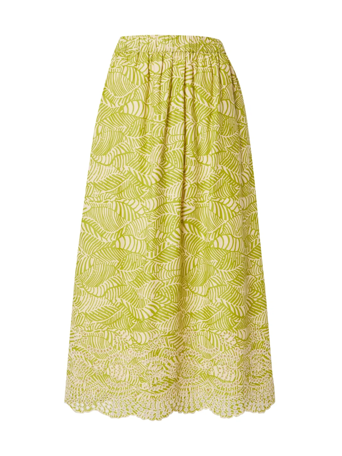 Design: A-lijn, Elastische taille/zoom, Geschulpte zoom; Materiaal: Katoen; Motief: Bloemenprint; Rokvorm: A-lijn rok; Details: Borduursels, Gedrapeerd, Mesh; Extra's: All-over patroon, Gladde stof; Lengte: 7/8 lengte; Pasvorm: Normale pasvorm