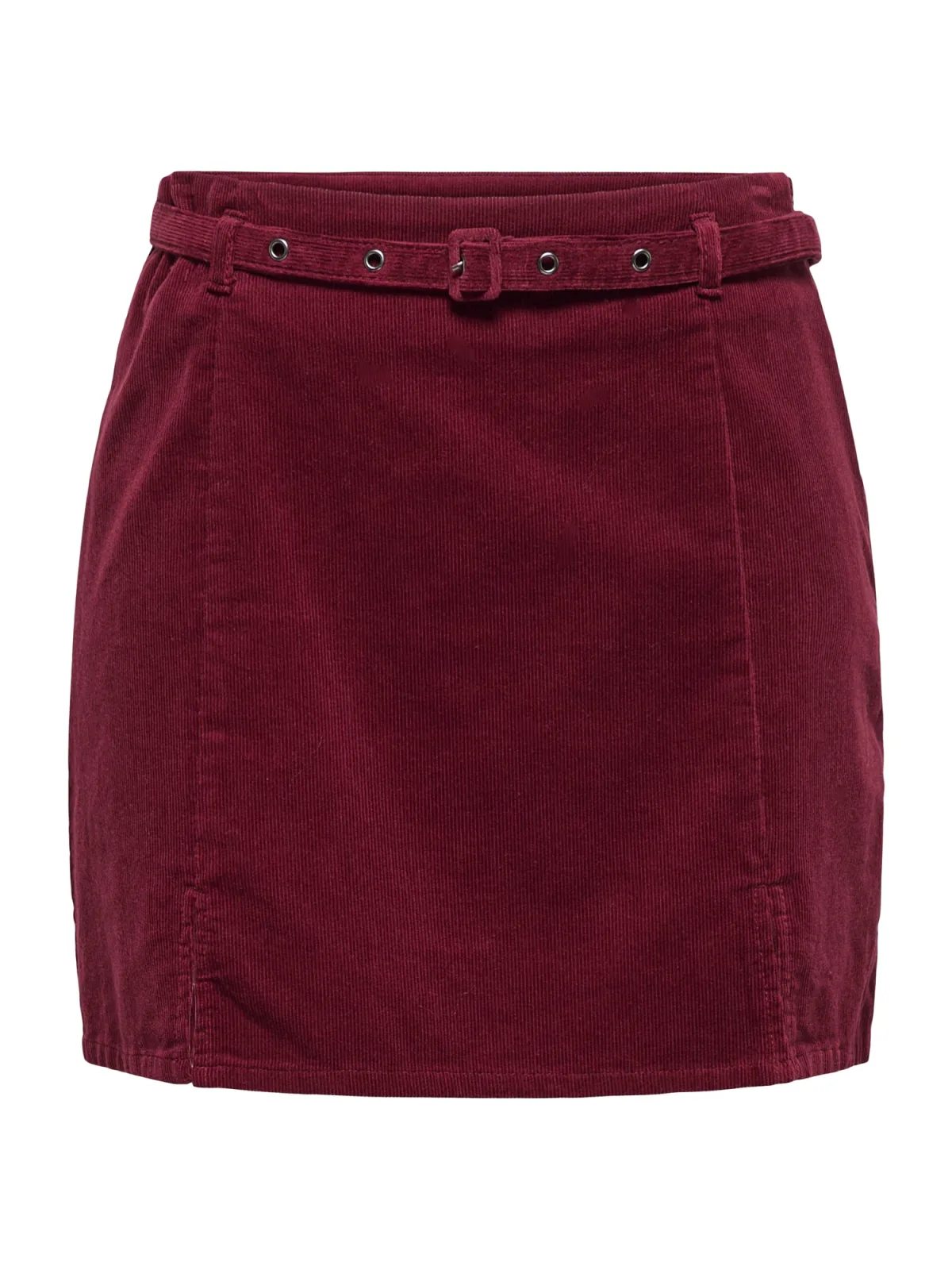 Design: Beenopening, Tailleriem; Type sluiting: Ritssluiting; Materiaal: Corduroy; Motief: Effen; Rokvorm: Minirok; Extra's: Op staal naden, Riemlussen; Lengte: Kort/mini; Pasvorm: Normale pasvorm