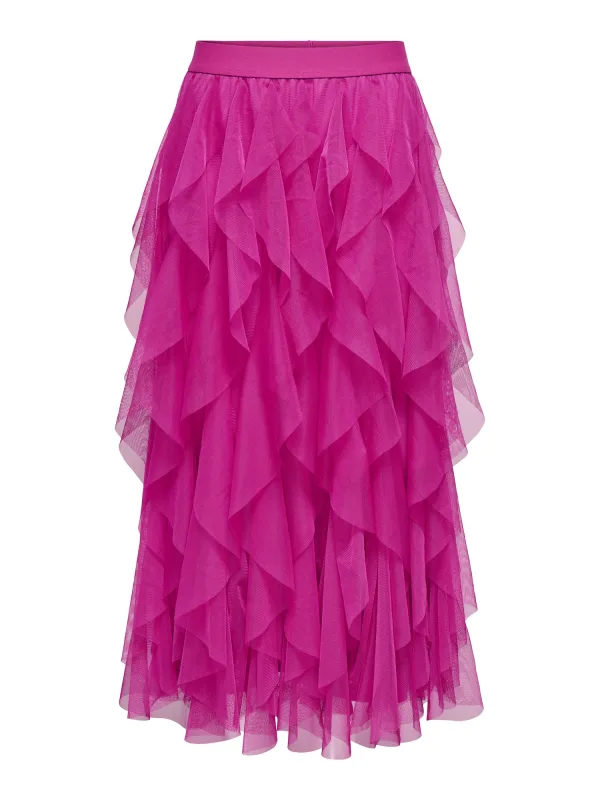 Design: Rechte zoom, Tailleband; Materiaal: Tule; Motief: Effen; Rokvorm: A-lijn rok; Details: Volant; Extra's: Op staal naden, Lichte stof; Lengte: Lang/maxi; Pasvorm: Normale pasvorm