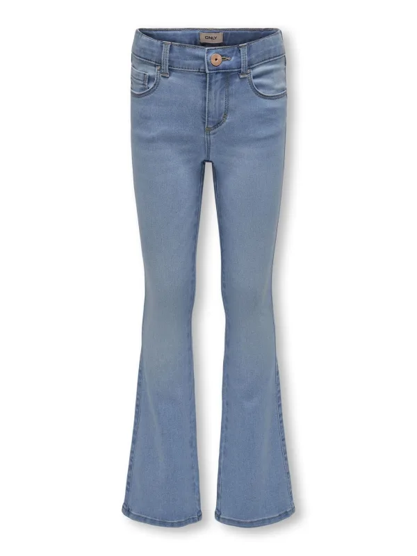 De perfecte jeans voor trendy meiden! Deze blue denim kleurige jeans bootcut flare fit van het merk Kids Only is een must-have voor elke modieuze kledingkast. Gemaakt van 69% katoen, 29% gerecycled polyester en 2% elastaan, biedt deze broek niet alleen een geweldige pasvorm, maar is hij ook nog eens gemaakt van duurzame materialen. Zo sla je twee vliegen in één klap! De bootcut en flare fit geven de broek een speelse uitstraling en de groyal light blue wassing zorgt voor een stoere touch. Met deze jeans ben je helemaal klaar om de wereld te veroveren. Of het nu gaat om een dag op school of een middagje shoppen met vriendinnen, deze jeans zal je niet teleurstellen. Shop hem nu in onze webshop en creëer eindeloos veel trendy outfits!