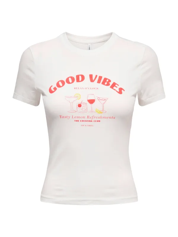 Design: Gevoerde zoom/rand, Nektape; Materiaal: Jersey; Halstype: Ronde hals; Motief: Tekst print; Extra's: Op staal naden, Voelt zacht aan, Huidvriendelijk materiaal; Pasvorm: Slanke pasvorm; Armlengte: Kwartmouw; Lengte: Korte pasvorm
