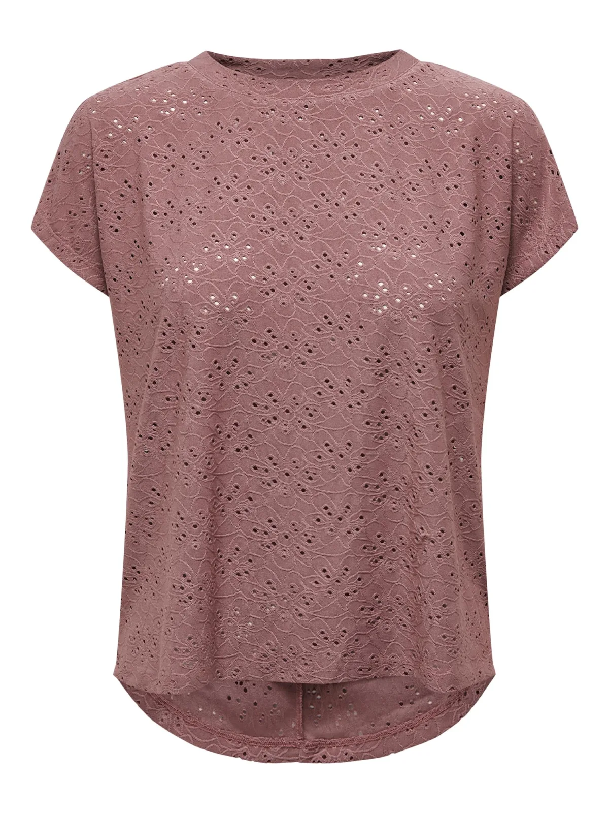 Dames T-shirt van 'Only';Model 'Smilla';Look: etskanteffect;Pasvorm: relaxed fit;hals: ronde hals;mouwvorm: korte mouw