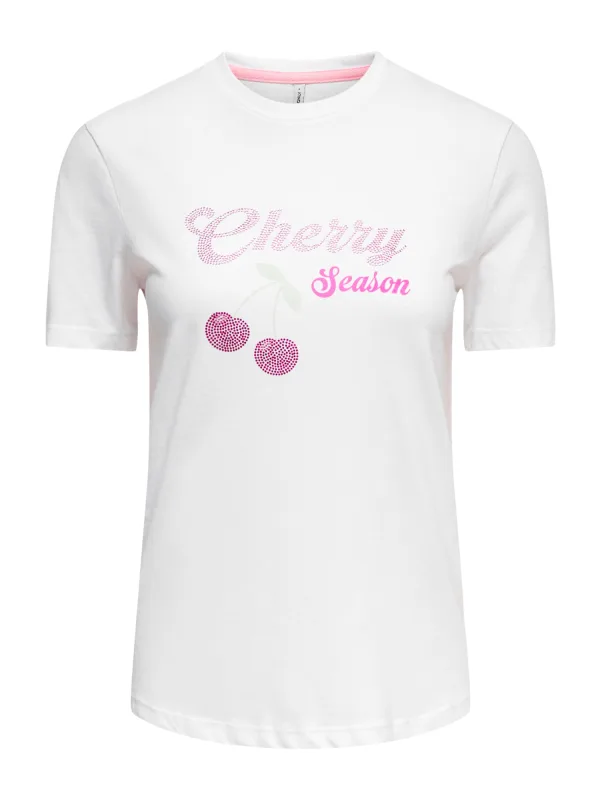 Design: Gevoerde zoom/rand, Rechte zoom, Nektape; Materiaal: Jersey; Halstype: Ronde hals; Motief: Motiefprint; Details: Sierstenen; Extra's: Op staal naden, Voelt zacht aan; Pasvorm: Normale pasvorm; Armlengte: Kwartmouw; Lengte: Normale lengte
