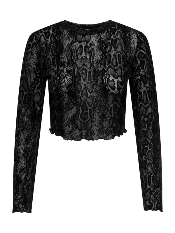 Design: Geribbelde kraag, Gerolde boord; Halstype: Ronde hals; Motief: Dierenprint; Extra's: Licht transparant, Gladde stof; Pasvorm: Slanke pasvorm; Armlengte: Lange mouw; Lengte: Korte pasvorm