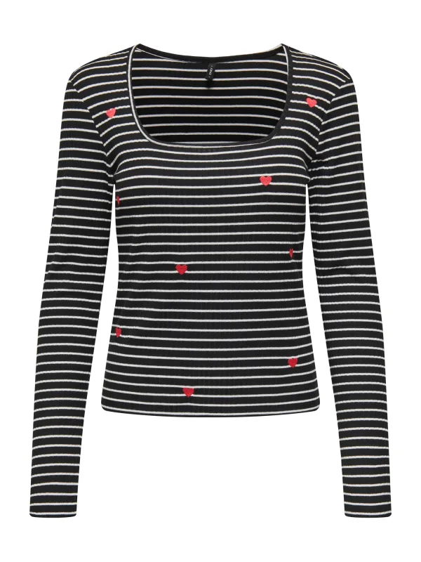 Design: Gevoerde zoom/rand, Ingelegde kraag; Materiaal: Jersey; Halstype: Carréhals; Motief: Gestreept; Details: Borduursels; Extra's: All-over patroon, Applicaties, Voelt zacht aan; Pasvorm: Slanke pasvorm; Armlengte: Lange mouw; Lengte: Normale lengte