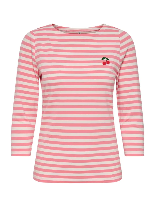 Design: Gevoerde zoom/rand, Geribbelde kraag, Rechte zoom; Materiaal: Jersey; Halstype: Boothals; Motief: Gestreept; Extra's: All-over patroon, Voelt zacht aan, Huidvriendelijk materiaal; Pasvorm: Normale pasvorm; Armlengte: Driekwart mouw; Lengte: Normale lengte