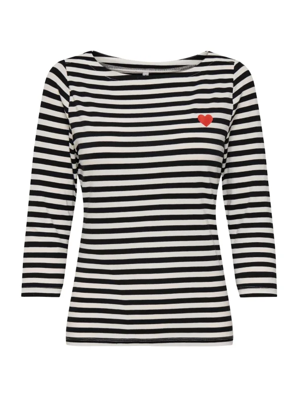 Design: Gevoerde zoom/rand, Rechte zoom; Materiaal: Jersey; Halstype: Boothals; Motief: Gestreept; Extra's: All-over patroon, Voelt zacht aan; Pasvorm: Normale pasvorm; Armlengte: Driekwart mouw; Lengte: Normale lengte