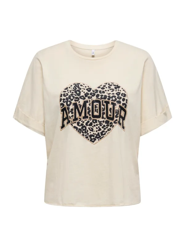 Design: Mouw revers, Geribbelde kraag, Gerolde boord; Materiaal: Jersey; Halstype: Ronde hals; Motief: Tekst print; Extra's: Glitterend, Voelt zacht aan; Pasvorm: Losse pasvorm; Armlengte: Halve mouw; Lengte: Normale lengte