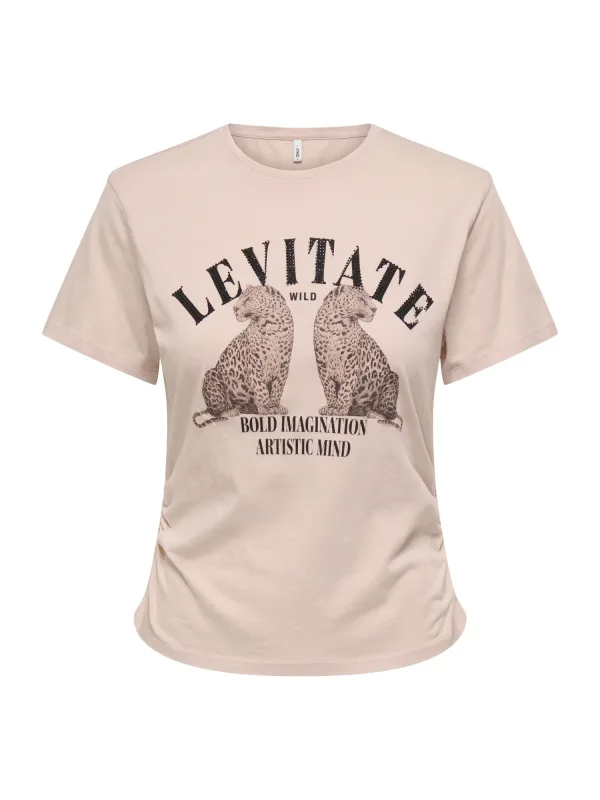 Design: Gevoerde zoom/rand, Rechte zoom; Materiaal: Jersey; Halstype: Ronde hals; Motief: Tekst print; Details: Sierstenen; Extra's: Glitterend, Voelt zacht aan; Pasvorm: Normale pasvorm; Armlengte: Kwartmouw; Lengte: Normale lengte